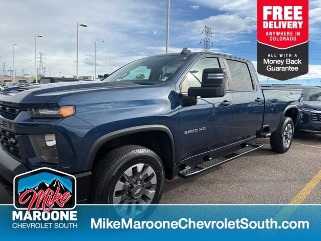 COME SEE THIS BEAUTIFUL 2022 Chevrolet Silverado 2500HD Custom AT MIKE MAROONE CHEVROLET SOUTH 230 N ACADEMY BLVD COLORADO SPRINGS CO, 3 DAY 150 MILE MONEY BACK GUARANTEE**, FREE DELIVERY ANYWHERE IN COLORADO**, 60 DAY POWERTRAIN WARRANTY**, CERTIFIED 1 OWNER VEHICLE**, CLEAN CARFAX - NO ACCIDENTS REPORTED**, **CHEVROLET CERTIFIED**, 100,000 MILE WARRANTY**, 172 POINT CHEVROLET CERTIFIED INSPECTION**, 1 FREE MONTH ONSTAR (IF EQUIPPED)**, 3 FREE MONTHS XM RADIO (IF EQUIPPED)**, 2 SETS OF KEYS**, 4 WHEEL DRIVE**, 8 COLOR TOUCHSCREEN**, APPLE CARPLAY**, ANDROID AUTO**, AIR CONDITIONING**, ALLOY WHEELS**, BLUETOOTH - HANDS FREE**, FRESH OIL & FILTER CHANGE**, FRONT & REAR BRAKES**, MP3- USB- AUX PORT**, POWER HEATED OUTSIDE MIRRORS**, CRUISE CONTROL**, POWER WINDOWS**, POWER LOCKS**, POWER SEAT**, REAR BACK UP CAMERA**, REAR CROSS TRAFFIC ALERT**, REMOTE VEHICLE START**, RUNNING BOARDS**, SERVICE RECORDS AVAILABLE**, STEERING WHEEL AUDIO CONTROLS**, TOW PACKAGE**, BEDLINER**. 4WD Chevrolet Certified Pre-Owned Details: