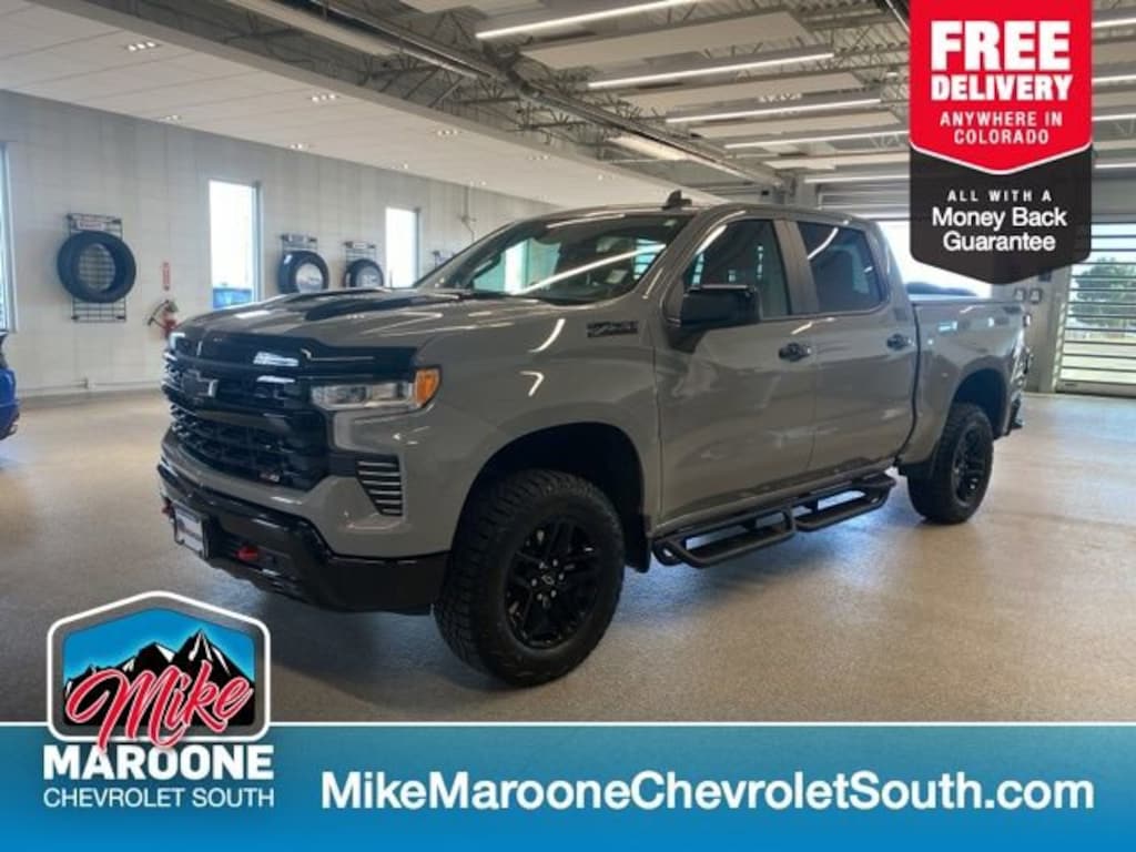 COME SEE THIS BEAUTIFUL 2024 Chevrolet Silverado 1500 LT Trail Boss AT MIKE MAROONE CHEVROLET SOUTH 230 N ACADEMY BLVD COLORADO SPRINGS CO, 3 DAY 150 MILE MONEY BACK GUARANTEE**, FREE DELIVERY ANYWHERE IN COLORADO**, 60 DAY POWERTRAIN WARRANTY**, CERTIFIED 1 OWNER VEHICLE**, CLEAN CARFAX - NO ACCIDENTS REPORTED**, **CHEVROLET CERTIFIED**, 100,000 MILE WARRANTY**, 172 POINT CHEVROLET CERTIFIED INSPECTION**, REMAINDER OF FACTORY WARRANTY**, 1 FREE MONTH ONSTAR (IF EQUIPPED)**, 3 FREE MONTHS XM RADIO (IF EQUIPPED)**, 4 WHEEL DRIVE**, 8 COLOR TOUCHSCREEN**, APPLE CARPLAY**, ANDROID AUTO**, AIR CONDITIONING**, ALLOY WHEELS**, BLUETOOTH - HANDS FREE**, FRESH OIL & FILTER CHANGE**, FRONT & REAR BRAKES**, HEATED SEATS**, HEATED STEERING WHEEL**, PASSIVE ENTRY SYSTEM**, KEYLESS OPEN**, KEYLESS START**, KEYLESS ENTRY**, POWER HEATED OUTSIDE MIRRORS**, CRUISE CONTROL**, POWER WINDOWS**, POWER LOCKS**, POWER SEAT**, REAR BACK UP CAMERA**, REAR CROSS TRAFFIC ALERT**, REMOTE VEHICLE START**, RUNNING BOARDS**, SERVICE RECORDS AVAILABLE**, STEERING WHEEL AUDIO CONTROLS**, TOW PACKAGE**, TRAILERING EQUIPMENT**, BEDLINER**. 4WD Chevrolet Certified Pre-Owned Details:* 24 months/24,000 miles (whichever comes first) Certified Pre-Owned Scheduled Maintenance Plan and 3 days/150 miles (whichever comes first) Vehicle Exchange Program. SiriusXM 3-month trial subscription.* Powertrain Limited Warranty: 72 Month/100,000 Mile (whichever comes first) from original in-service date* Roadside Assistance* Vehicle History* Warranty Deductible: $0* Limited Warranty: 12 Month/12,000 Mile (whichever comes first) from certified purchase date* 172 Point Inspection* Transferable WarrantyOdometer is 25469 miles below market average!