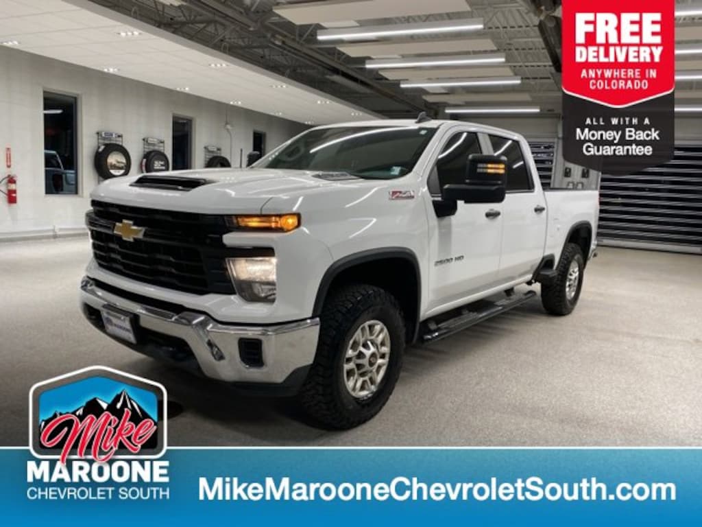 COME SEE THIS BEAUTIFUL 2024 Chevrolet Silverado 2500HD AT MIKE MAROONE CHEVROLET SOUTH 230 N ACADEMY BLVD COLORADO SPRINGS CO, 3 DAY 150 MILE MONEY BACK GUARANTEE**, FREE DELIVERY ANYWHERE IN COLORADO**, 60 DAY POWERTRAIN WARRANTY**, CERTIFIED 1 OWNER VEHICLE**, **CHEVROLET CERTIFIED**, 100,000 MILE WARRANTY**, 172 POINT CHEVROLET CERTIFIED INSPECTION**, REMAINDER OF FACTORY WARRANTY**, 1 FREE MONTH ONSTAR (IF EQUIPPED)**, 3 FREE MONTHS XM RADIO (IF EQUIPPED)**, 4 WHEEL DRIVE**, 8 COLOR TOUCHSCREEN**, APPLE CARPLAY**, ANDROID AUTO**, AIR CONDITIONING**, ALLOY WHEELS**, BLUETOOTH - HANDS FREE**, FRESH OIL & FILTER CHANGE**, CRUISE CONTROL**, POWER WINDOWS**, POWER LOCKS**, REAR BACK UP CAMERA**, REAR CROSS TRAFFIC ALERT**, RUNNING BOARDS**, SERVICE RECORDS AVAILABLE**, STEERING WHEEL AUDIO CONTROLS**, TOW PACKAGE**, TRAILERING EQUIPMENT**, BEDLINER**. 4WD Chevrolet Certified Pre-Owned Details: