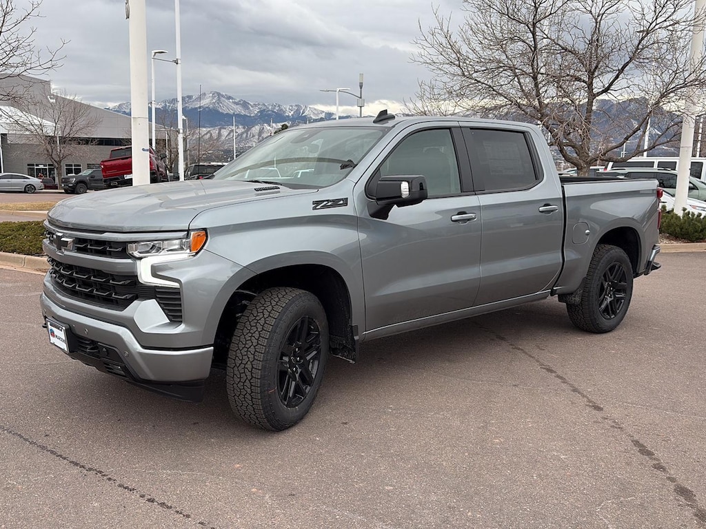 This New 2026 Chevrolet Silverado 1500 RST, is Sterling Gray Metallic in color with an Jet Black interior. Stock Number N260562. You can connect with us by calling (719) 249-2703. Chevrolet Consumer Cash Program Not available with special financing, lease and some other offers. See dealer for details. ($2500) Expires: 02/03/2026, GM Bonus Cash Not available with special financing, lease and some other offers. See dealer for details. ($1750) Expires: 02/03/2026 Important Package and Feature Information All Star Edition Plus ($1,615 value)Convenience Package IIPower Sliding Rear Window with Rear DefoggerHitch Guidance with Hitch ViewIn-Vehicle Trailering System AppUniversal Home RemotePremium Bose 7-Speaker Sound SystemDark Essentials Package ($695 value)Black Name PlatesLeather Package ($985 value)Leather-Appointed Front Seat TrimUp-Level Rear Seat with Storage PackageZ71 Off-Road and Protection Package ($1,625 value)All-Weather Floor LinerZ71 Off-Road PackageHill Descent ControlHeavy-Duty Air FilterDual Exhaust with Polished Outlets2-Speed Electronic Autotrac Transfer CaseSkid PlatesRST All Star Premium PackageSafety Package ($1,115 value)Trailer Camera ProvisionsPerimeter LightingUltrasonic Front and Rear Park AssistRear Cross Traffic BrakingRear Pedestrian AlertTrailer Side Blind Zone AlertHD Surround VisionPreferred Equipment Group 1SPSiriusXM with 360L Trial SubscriptionRear 60/40 Folding Bench Seat (folds Up)Power Front Windows with Passenger Express DownPower Rear Windows with Express DownDeep-Tinted GlassPower Front Windows with Driver Express Up/downColor-Keyed Carpeting Floor CoveringFront Rubberized Vinyl Floor MatsRear Rubberized-Vinyl Floor MatsBluetooth For PhoneInside Rearview Mirror with TiltHeated Power-Adjustable Outside MirrorsHigh Gloss Black Mirror CapsAuto-Locking Rear DifferentialIntegrated Trailer Brake ControllerElectronic Cruise ControlSingle-Speed Transfer CaseConvenience PackageAll-Star EditionChevy Safety AssistStandard TailgateEZ Lift Power Lock and Release TailgateFront LED Fog LampsTeen Driver12.3" Multicolor Reconfigurable Digital DisplayOnStar Services CapableTire Pressure Monitoring SystemSteering Wheel Audio Controls6-Speaker Audio SystemHD Rear Vision CameraFront Frame-Mounted Black Recovery HooksTrailering PackageProtection PackageRear Wheelhouse LinersChevytec Spray-On Black Bedliner Safety and Security Forward collision mitigation - Forward thinking. You look away for just a second and suddenly the vehicle in front of you has stopped. That's when the forward collision mitigation system comes to life. When it senses an impending impact, it will activate a combination of features to help prevent or reduce the severity of an accident. Forward collision mitigation is always looking ahead. Pedestrian impact prevention - An extra step toward safety. Pedestrians don't always stop, look, and listen, but with Pedestrian Impact Prevention, your vehicle is equipped to better see them and avoid them. This system constantly monitors the road ahead to identify and track pedestrians. It projects that image to an interior display screen, AND should an impact become likely, Pedestrian impact prevention takes steps to avoid a collision. Rear camera - Watching your back! The rear camera helps you see obstacles and hazards you otherwise couldn't by showing enhanced images of what is behind you. The rear camera is an extra set of eyes that's both convenient and safe.Technology and Telematics Apple CarPlay/Android Auto smart device wireless mirroring Mobile hotspot - WiFi on the fly. Connect your devices to the Internet through your vehicles private mobile hotspot and take the internet wherever your journey takes you, without eating up your data allowance. Find the hotspot with mobile hotspot. EMISSIONS, FEDERAL REQUIREMENTS, EMISSIONS OVERRIDE, CALIFORNIA, ENGINE, DURAMAX 3.0L TURBO-DIESEL I6, TRANSMISSION, 10-SPEED AUTOMATIC, GVWR, 7200 LBS. (3266 KG), REAR AXLE, 3.23 RATIO, WHEELS, 20" X 9" (50.8 CM X 22.9