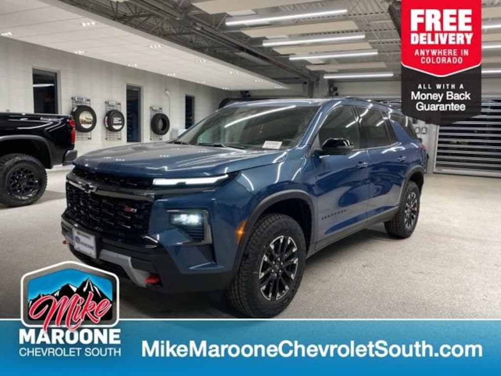COME SEE THIS BEAUTIFUL 2026 Chevrolet Traverse Z71 AT MIKE MAROONE CHEVROLET SOUTH 230 N ACADEMY BLVD COLORADO SPRINGS CO, 3 DAY 150 MILE MONEY BACK GUARANTEE**, FREE DELIVERY ANYWHERE IN COLORADO**, 4-Way Manual Front Passenger Seat Adjuster, 6-Speaker Audio System Feature, 8-Way Power Driver Seat Adjuster, Apple CarPlay/Android Auto, Auto High-beam Headlights, Automatic temperature control, Driver Confidence Package, Evotex Seat Trim, Fully automatic headlights, HD Surround Vision, Heated door mirrors, Heated Driver and Front Passenger Seats, Heated steering wheel, Key Card, Navigation System, Power Dual Glass Panoramic Sliding Sunroof, Power Liftgate, Power Outlet, Radio: : Audio System w/17.7 Diagonal Display, Rear air conditioning, Rear Camera Mirror, Rear Pedestrian Alert, Remote keyless entry, SiriusXM with 360L Trial Subscription, Steering wheel mounted audio controls, Telescoping steering wheel, Traffic Sign Recognition, Wheels: : 18 High Gloss Black Painted Aluminum. 2026 Chevrolet Traverse Z71 AWD 8-Speed Automatic 2.5L DOHC Lakeshore Blue Metallic Recent Arrival! Price includes: $1000 - Chevrolet Bonus Cash. Exp. 03/02/2026