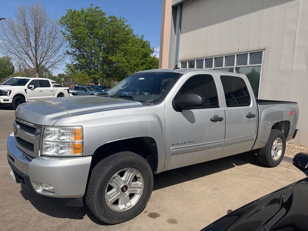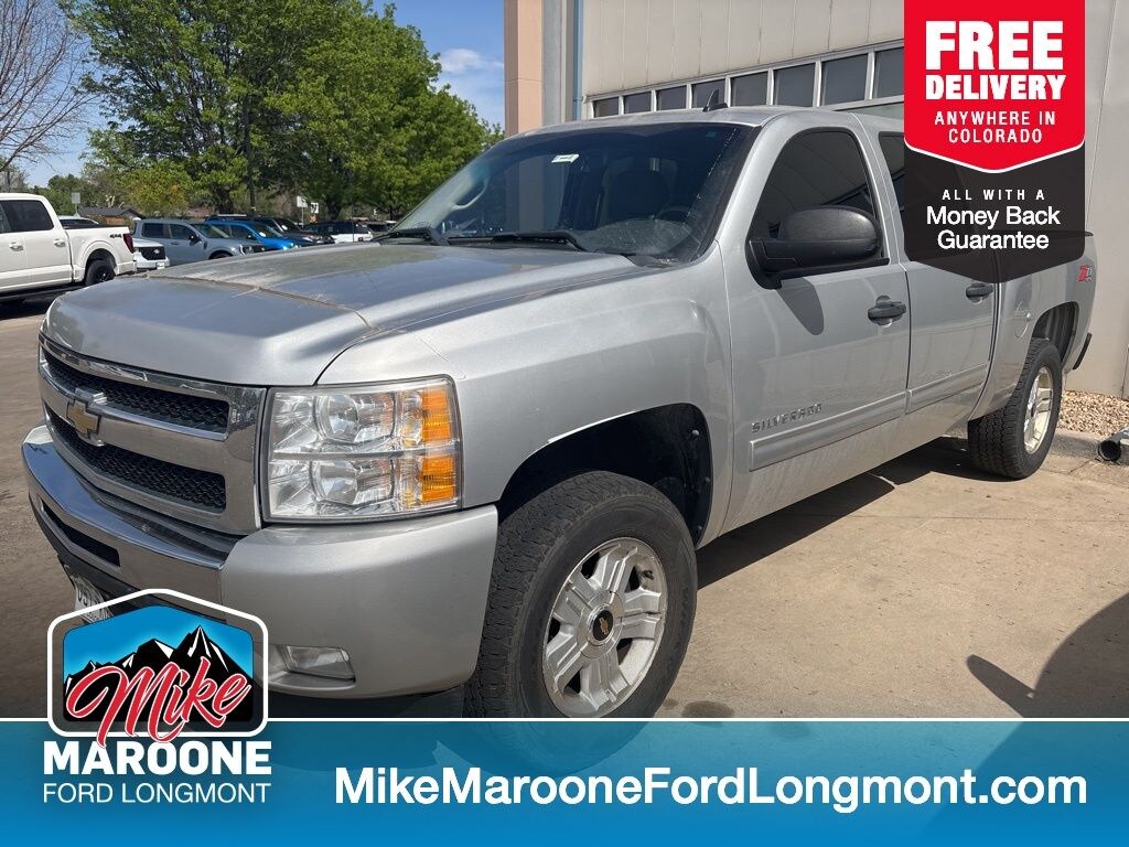 FREE DELIVERY ANYWHERE IN COLORADO, 5.3L V8 SFI Flex Fuel engine, 6-speed automatic transmission, rear-wheel drive, LT trim, Z71 Off-Road Package, heavy-duty trailering package, locking rear differential, skid plates, off-road suspension, 17-inch aluminum wheels, all-terrain tires, power driver seat, front bucket seats, premium cloth interior, dual-zone automatic climate control, leather-wrapped steering wheel, steering wheel audio controls, cruise control, remote start system, keyless entry, power windows and locks, power-adjustable heated outside mirrors, auto-dimming rearview mirror, AM/FM stereo with CD/MP3 player, Bose premium audio system, USB port, XM Satellite Radio, Bluetooth connectivity, navigation system capability, OnStar capability, bed liner, chrome bumpers, chrome grille, fog lamps, daytime running lights, trailer hitch receiver, integrated trailer brake controller. Sheer Silver Metallic 2010 Chevrolet Silverado 1500 LT 4D Crew Cab Vortec 5.3L V8 SFI VVT Flex Fuel 6-Speed Automatic 4WD