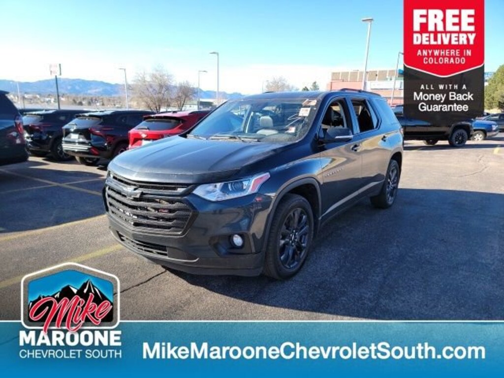 Recent Arrival! COME SEE THIS BEAUTIFUL 2020 Chevrolet Traverse AT MIKE MAROONE CHEVROLET SOUTH 230 N ACADEMY BLVD COLORADO SPRINGS CO, 3 DAY 150 MILE MONEY BACK GUARANTEE**, FREE DELIVERY ANYWHERE IN COLORADO**, 60 DAY POWERTRAIN WARRANTY**, 1 FREE MONTH ONSTAR (IF EQUIPPED)**, 3 FREE MONTHS XM RADIO (IF EQUIPPED)**, 3RD ROW SEATING**, 8 COLOR TOUCHSCREEN**, APPLE CARPLAY**, ANDROID AUTO**, AIR CONDITIONING**, ALL WHEEL DRIVE**, ALLOY WHEELS**, BLUETOOTH - HANDS FREE**, BOSE PREMIUM STEREO**, FRESH OIL & FILTER CHANGE**, HEATED SEATS**, HEATED STEERING WHEEL**, KEYLESS OPEN**, KEYLESS START**, KEYLESS ENTRY**, POWER SUNROOF**, CRUISE CONTROL**, POWER WINDOWS**, POWER LOCKS**, POWER SEAT**, REAR BACK UP CAMERA**, REMOTE VEHICLE START**. AWD Certification Program Details: This 2020 Chevrolet Traverse also comes with the FULL Mike Maroone 60-Day warranty. We will review the technician's vehicle inspection report with you before purchase. Our intention is to provide you a completely transparent buying experience. At Mike Maroone our used vehicles are Safety Checked, Warrantied, CARFAX, and if you don't like it ... Bring it back! All of our new and used vehicles come with the Mike Maroone Preferred Owner Advantages listed below: - MARKET BASED PRICING - 3 DAY/150 MILE MONEY BACK GUARANTEE - FREE LOANERS FOR SERVICE GUESTS WHO SET AN ONLINE APPOINTMENT - 12 MONTH/12K MILE SERVICE/COLLISION GUARANTEE - 60 DAY LIMITED POWERTRAIN PRE-OWNED VEHICLE WARRANTY - MILITARY DEPLOYMENT BUYBACK GUARANTEE - FREE DELIVERY ANYWHERE IN COLORADO For more information or vehicles like it, stop by Mike Maroone South today. We are just south of the Citadel Mall on the corner of Academy and Bijou.