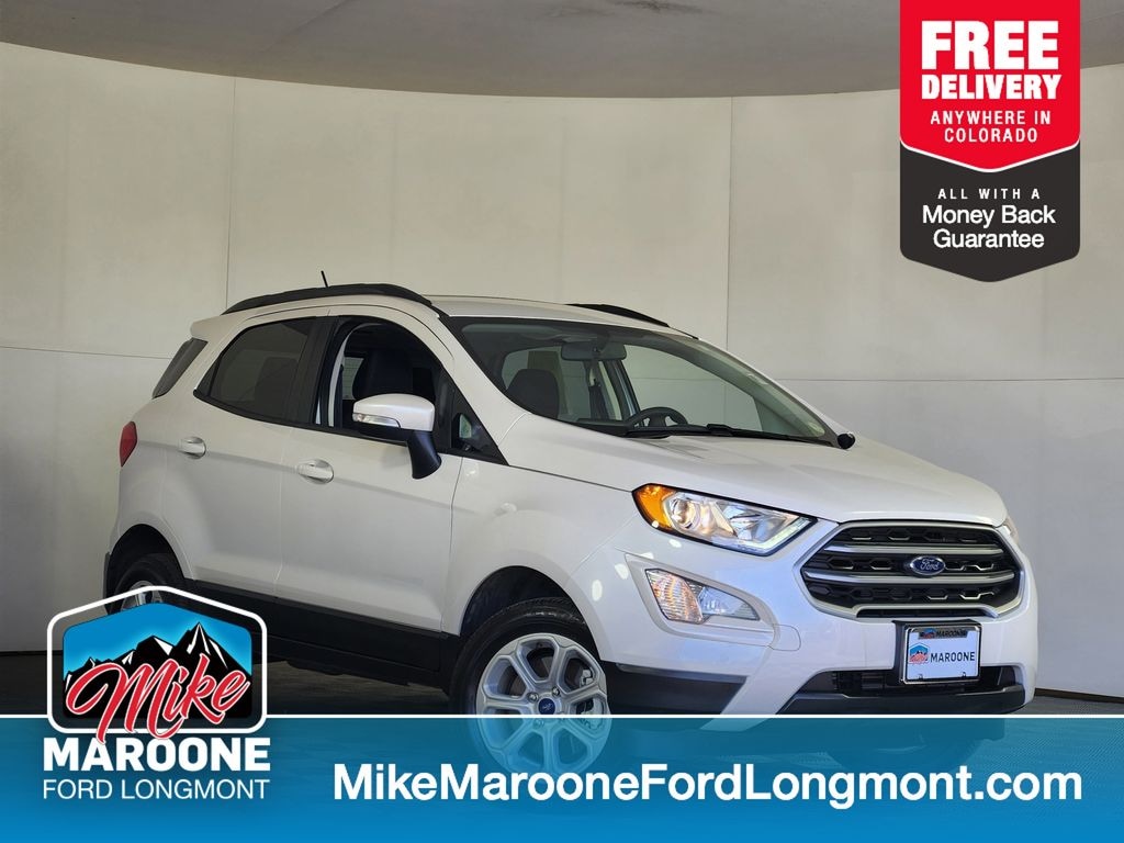 CARFAX One-Owner. FREE DELIVERY ANYWHERE IN COLORADO, 2021 Ford EcoSport SE AWD, 2.0L Ti-VCT GDI I-4 Engine, 6-Speed Automatic Transmission w/ SelectShift, All-Wheel Drive, White Platinum Metallic Tri-Coat Exterior, Ebony Black Unique Cloth Interior, Equipment Group 200A, FordPass Connect 4G Wi-Fi Hotspot, SYNC 3 w/ 8" Touchscreen & AppLink, Apple CarPlay & Android Auto, Rear View Camera, Reverse Sensing System, Hill Start Assist, Electronic Stability Control, AdvanceTrac w/ RSC, Cruise Control, Automatic Start-Stop Technology, Electronic Automatic Climate Control, Power Windows, Locks & Mirrors, Leather-Wrapped Steering Wheel w/ Audio Controls, Heated Front Seats, Power Moonroof w/ Sunshade, Split Fold-Flat Rear Seats (60/40), Cargo Management System, Swing Gate Rear Door w/ Rear-Mounted Spare, Fog Lamps, Halogen Headlamps w/ LED Signature Lighting, 16-Inch Shadow Silver Aluminum Wheels, P205/60R16 All-Season Tires, 50-State Emissions, Front License Plate Bracket. White Platinum Clearcoat Metallic 2021 Ford EcoSport SE 4D Sport Utility 2.0L I4 Ti-VCT GDI 6-Speed Automatic 4WD