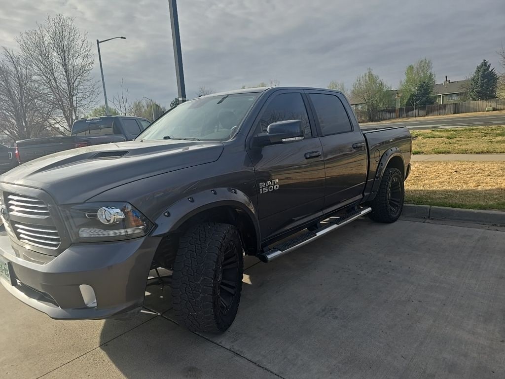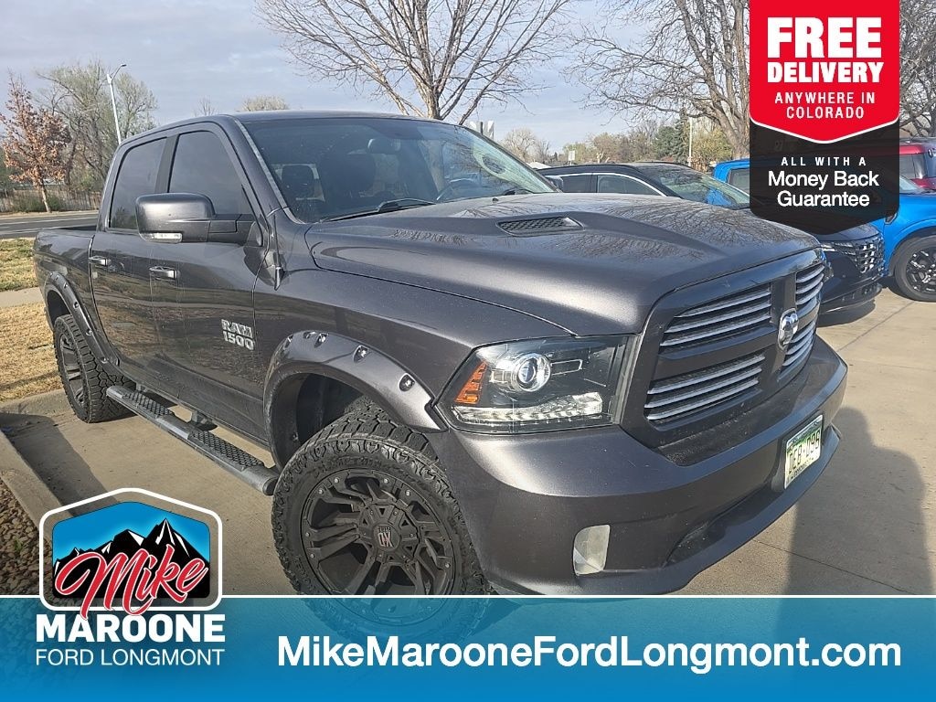FREE DELIVERY ANYWHERE IN COLORADO, 2017 Ram 1500 Sport Crew Cab 4x4, 5.7L HEMI V8 Engine w/ FuelSaver MDS, 8-Speed Automatic Transmission, 4WD, Granite Crystal Metallic Exterior, Black Cloth Bucket Seats w/ Vinyl Bolsters, Sport Performance Hood, 20" Aluminum Wheels w/ Tech Silver Pockets, 275/60R20 All-Season Tires, Bright Dual Rear Exhaust Tips, Power Folding Exterior Mirrors, Keyless Enter n Go w/ Push-Button Start, Remote Start System, Remote Proximity Keyless Entry, Automatic High-Beam Headlamp Control, Rain-Sensing Windshield Wipers, Uconnect 8.4" Touchscreen w/ SiriusXM, Hands-Free Communication & Bluetooth, GPS Navigation, SiriusXM Satellite Radio (1-Year Subscription), 6-Speaker Audio System, Leather-Wrapped Steering Wheel w/ Audio Controls, 7" Customizable In-Cluster Display, Dual-Zone Climate Control, Air Conditioning, Cruise Control, Power 10-Way Driver Seat w/ Lumbar, Power Windows (1-Touch Up/Down), Power Door Locks, Rear Power Sliding Window, Rear 60/40 Split Folding Seat, Under-Seat Storage, Pickup Box Lighting, Class IV Receiver Hitch, 4- and 7-Pin Wiring Harness, Electronic Shift-on-the-Fly Transfer Case, Electronic Stability Control, Traction Control, Hill Start Assist, Trailer Sway Control, Advanced Multistage Front Airbags, Supplemental Side-Curtain & Seat-Mounted Airbags, Tire Pressure Monitoring System (TPMS), Universal Garage Door Opener, Sentry Key Theft Deterrent System.. Granite Crystal Metallic Clearcoat 2017 Ram 1500 Sport 4D Crew Cab HEMI 5.7L V8 Multi Displacement VVT 8-Speed Automatic 4WD